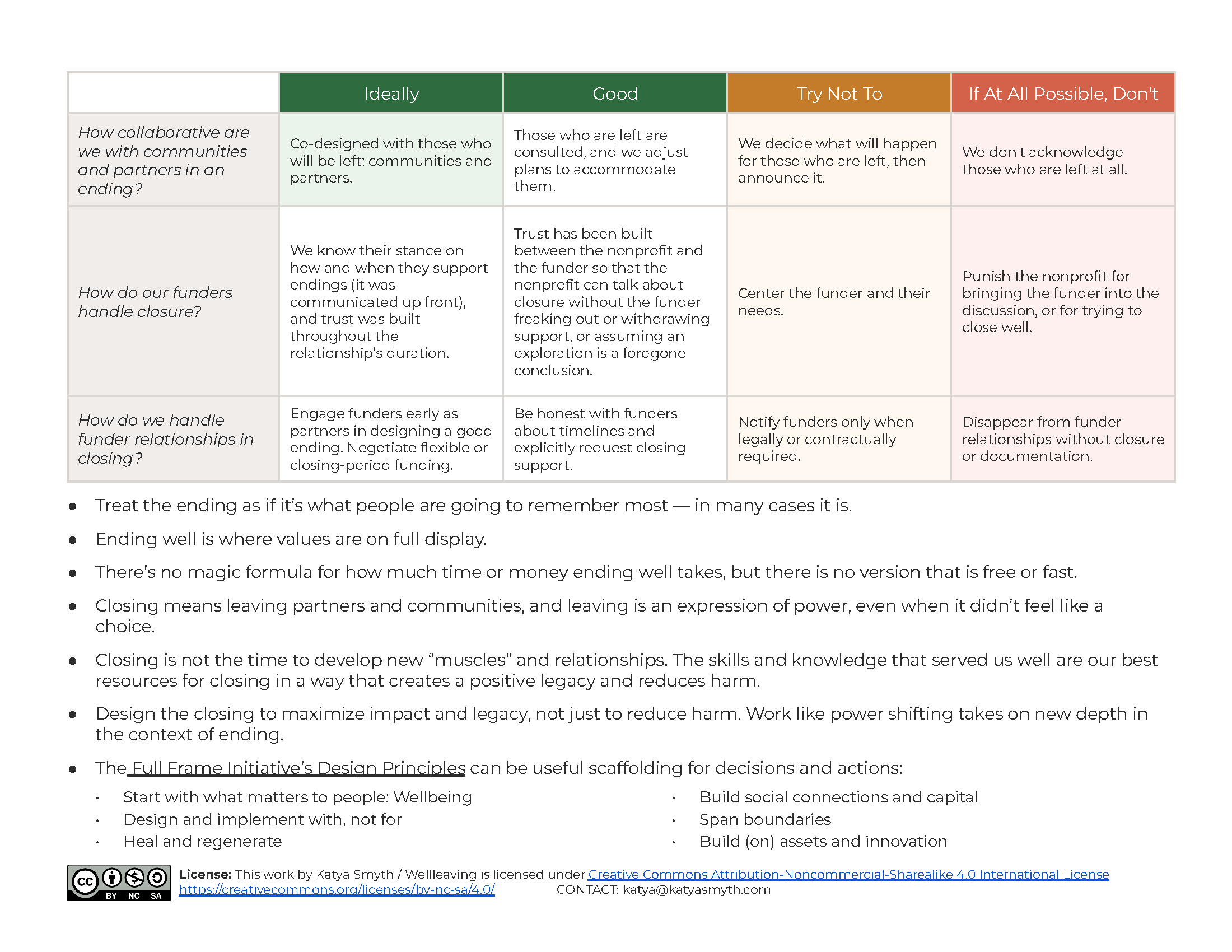 It’s not just the legal stuff — any more than the legal stuff was the “it” when you launched or were crushing it. Don’t let the lawyers or the people who want to cut + run drive the plan, and don’t wait until you have to have “the talk” to name closure as a possibility. Here’s a double-sided cheat sheet to help you get started.